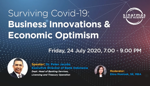 인도네시아 시나르마스 그룹이 소유한 Sinarmas World Academy는 지난 7월 24일 "코로나19에 따른 경제혁신과 경제 전망”을 주제로 웨비나를 개최했다. 웨비나에는 인니 중앙은행(BI)장 Peter Jacobs가 연사로 참가했다.