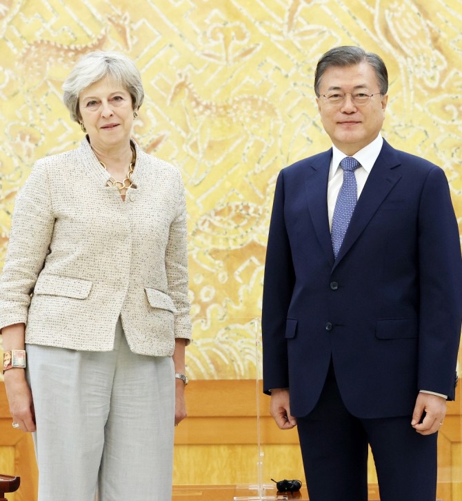문 대통령은 메이 전 총리가 현직에 재임할 당시인 2017년 9월과 2018년 10월 두 차례 한·영 정상회담을 가졌다.
