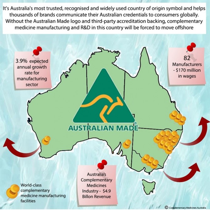 호주 보완의학협회(Complementary Medicine Austrailia, CMA)에서 제공한 2018년 자료에 따르면 비타민 및 건강기능 보조제 산업의 시장 규모는 49억 호주달러(4조2,000억 원) 규모로 특히 2013~17년 사이 약 20억 호주달러 성장을 거두었다. 이러한 성장세는 앞으로도 지속될 것으로 보이며 제품 생산량 기준 약 4% 성장이 예상된다. 주요 성장 원인에는 내부적으로는 평균 수명 증가에 따라 고령인구가 증가하고 건강한 삶에 대한 관심이 커지면서 내수시장이 성장했고 외부적으로는 중국을 위시한 아시아 태평양 지역으로 호주산 제품이 인기를 끌면서 수출량이 크게 증가한 데 있다.