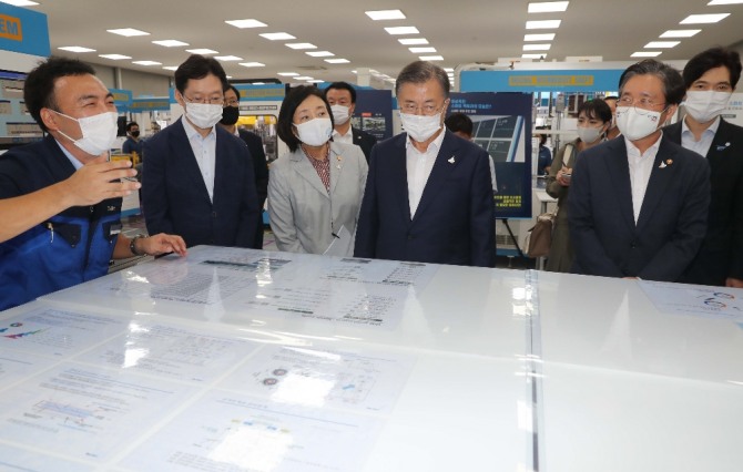 문 대통령은 창원 산단이 가장 빨리 스마트그린 산단으로의 전환을 성공함으로써 여타 산단의 변화를 이끌어내는 선도적 역할을 해 줄 것을 당부했다.