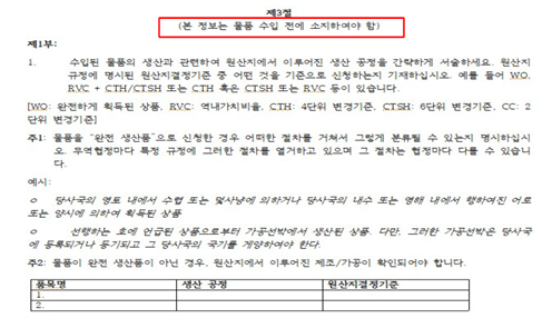 | ③ 검증 없이 특혜배제가 가능한 기준 마련 | - 협정에 따른 양허 대상 품목이 아닌 경우 - 원산지증명서에 물품에 대한 완전한 정보 불포함 - 원산지증명서 유효기간이 경과한 경우 - 원산지증명서에 발급기관에 의하지 않은 변경이 있는 경우 |