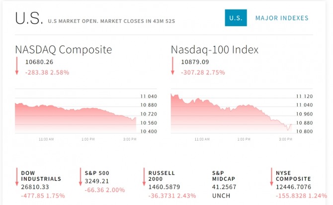 U.S MARKET OPEN. MARKET CLOSES IN 43M 52S NASDAQ Composite 10680.26 -283.38 2.58%