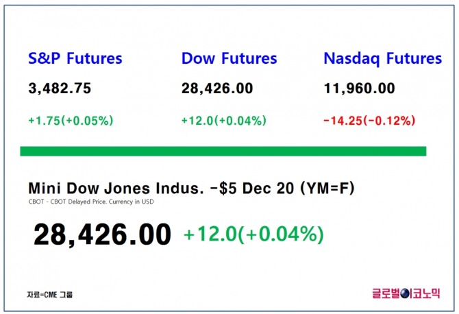 이미지 확대보기스탠더드 앤드 푸어스(S&P) 500 지수 선물은 0.05%(1.75포인트) 상승한 3482.75에 거래되고 있고, 나스닥 100 선물은 0.12%(14.25포인트)하락한 1만1960.0에 거래되고 있다.