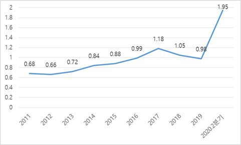 10개년 태국 실업률 현황(2011~2020년 2분기)