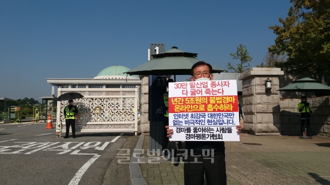 경마소비자단체, 국회 앞 1인 시위..."온라인 베팅 금지, 불법경마·외화유출만 부추긴 결과"