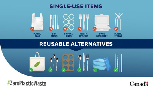 2019년, 캐나다 환경부에서 발표한 플라스틱 폐기물 관련 경제 보고서(Economic Study of the Canadian Plastic Industry, Markets and Waste)에 따르면 캐나다는 연간 약 300만 톤 이상에 달하는 플라스틱 폐기물을 배출하고 있는데, 이는 C$ 78억의 손실된 경제가치를 의미한다. 또한, 폐 플라스틱의 87%는 대규모로 매립되거나 버려지며 재활용률은 10% 정도로 낮은 수준인 것으로 나타났다. 폐 플라스틱을 주로 생성하는 부문은 포장(47%), 자동차(9%), 섬유(7%), 전기 및 전자 장비(7%), 건설(5%) 산업이다. 캐나다에서는 연간 150개의 비닐봉지와 5700만 개의 빨대가 소비되고 있으며, 이 품목들은 해안가 쓰레기의 3%를 차지하는 등 환경오염의 주 원인으로 정부의 규제가 필요한 분야이다.