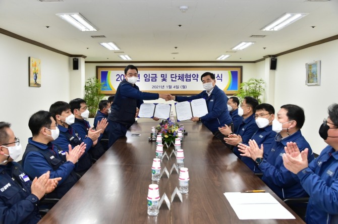 강원식 노조위원장도 “상생의 노사문화를 바탕으로 조합원들의 고용안정과 후생복지 증진에 최선을 다하겠다”며 “노동조합도 당면한 경영 위기극복 노력에 적극 동참할 것”이라고 밝혔다.
