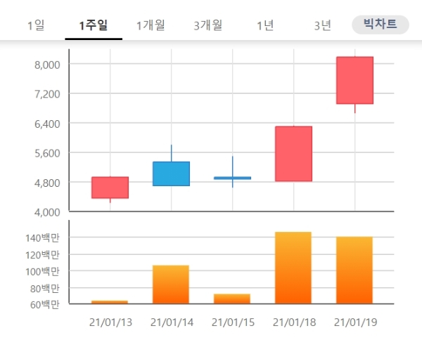 단기주가급등으로 한국거래소는 투자경고종목으로 지정했다.
