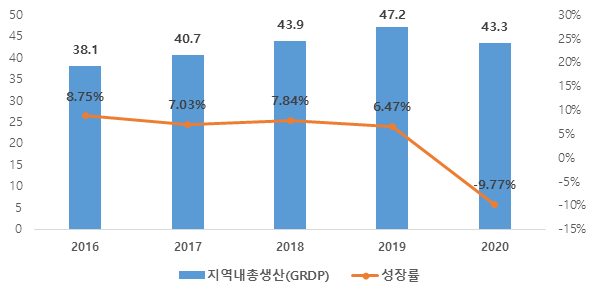 최근 5년간 다낭시 지역내총생산(GRDP) 및 경제성장률 추이