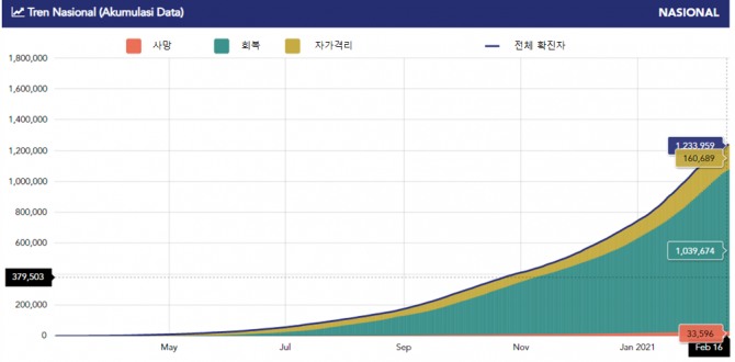 인도네시아 코로나19 추이(2.16. 기준)