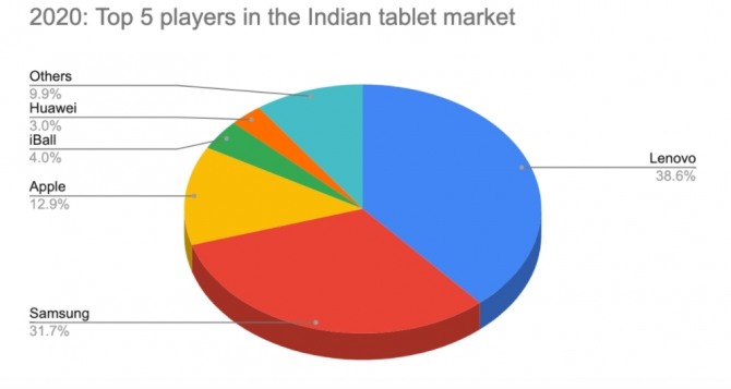 이미지 확대보기26일(현지시간) 시장조사업체 IDC가 공개한 보고서에 따르면 인도 태블릿 시장은 지난해 280만 대로 전년대비 14.7%로 증가했다. IDC는 신종 코로나바이러스 감염증(코로나19)여파로 “(정부의 )이러닝 지원으로 태블릿 유용성이 늘어나 4년 연속 감소한 후 증가한 것”이라고 분석했다.