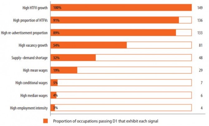 두 번째 단계에서는 현재 남아공 경제에 우선적으로 필요한 260개의 직업군이 선별됐으며, 선별 기준은 아래의 두 가지 조건 중 해당사항이 있을 경우 채택됐다.
