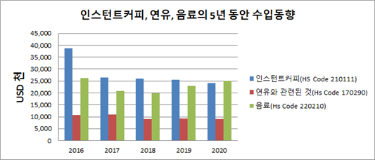 인스턴트커피(HS Code 210111)의 최근 5년 수입 동향