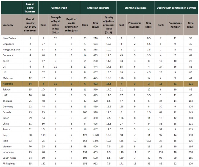 2020년 회계연도 기준, 한국은 전체 호주 교역의 4.5%를 차지하며 대호주 4위 교역국 자리를 유지하고 있다. 올해 한-호 수교 60주년을 맞아 양국의 관계는 더욱 견고해지고 있으며 World Bank에서 발표한 기업환경평가(Doing Business Ranking) 순위에서 볼 수 있듯이 호주는 사업 진출이 용이한 국가 중 14위에 올랐다.