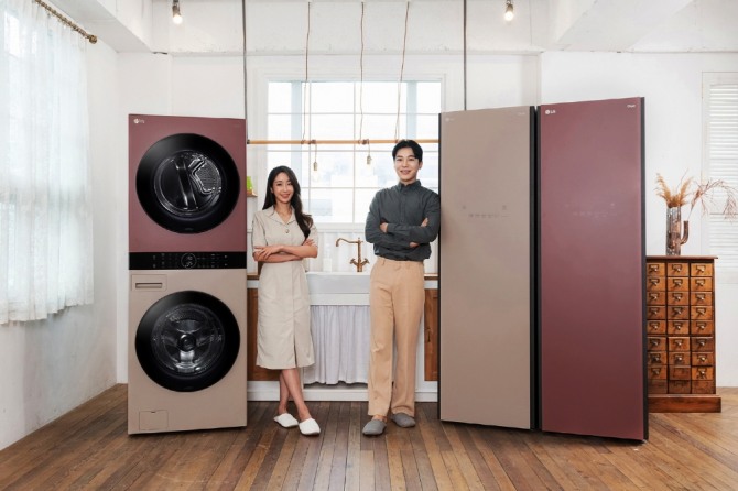 LG전자는 클레이 브라운, 레드 우드 등 신규 색상이 의류관리기 대명사 스타일러, 원바디 세탁건조기 워시타워에 먼저 적용된다고 밝혔다. 신제품 가격은 워시타워 359만원, 스타일러 209만원이다.