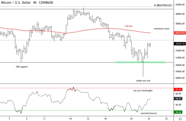 세계에서 가장 큰 암호 화폐는 보도 당시 약 3만4,000달러에 거래되고 있으며 지난 24시간 동안 9% 상승했습니다. 전날 거의 10%에 가까운 가격 하락은 전형적인 흔들림 현상으로, 매도자가 항복할 때의 신호로 시장 혼란의 시기를 알린다.