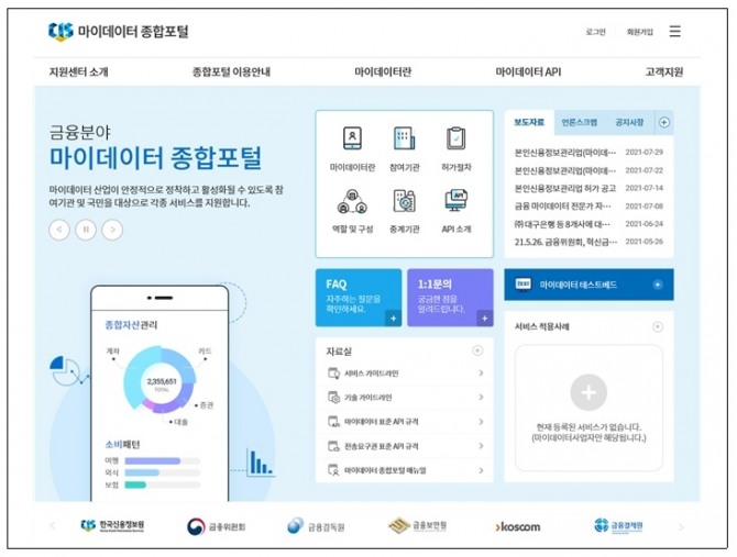종합포털은 산업 참여기관을 대상으로 기관 등록·관리, 마이데이터 서비스 자격증명 발급·관리, 산업통계· 지표를 제공해 안정적인 서비스 운영과 산업의 발전을 지원할 방침이다.