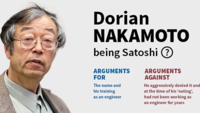 이것은 아마도 비트코인의 창시자를 밝히기 위한 가장 세간의 이목을 끈 시도였을 것이다. 2014년 3월 뉴스위크는 도리안 나카모토(Dorian Nakamoto)를 화폐 창시자로 확인했다. 이 기사는 암호화폐 및 광범위한 기술 커뮤니티에 큰 환호를 불러 일으켰다. 이는 주류 간행물이 비트코인 창시자의 신원을 알아보려고 시도한 첫 번째 사례였기 때문이다.