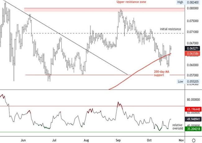 ETH/BTC 비율은 지난주에 안정화되어 거래자들이 BTC에서 ETH로 회전하기 시작했음을 나타낸다. 이 비율은 0.06 부근에서 지지를 받고 있으며 0.07과 0.08 부근에서 단기 저항에 직면할 것으로 보인다.