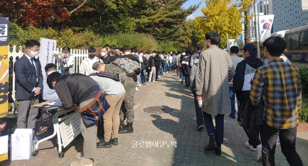 오후 6시까지도 서명 행렬이 계속되는 가운데 이상헌 의원실 관계자는 "오후 5시까지 줄을 서신 분들에게만 서명을 받기로 결정, 시민들에게 미리 안내했다"며 "정확한 서명인 수는 별도로 확인해 봐야겠으나 5000명에 가까운 이들이 참여한 것 같다"고 전했다.