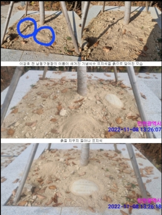 특히 기념식수 표지석은 주민의 혈세로 심은 것이다. 주민에게 묻지도 않고 훼손시킨 것은 '직권남용'이라고 성토하면서 “구청장이 바뀐 후 허접한 행정은 보기가 민망할 정도라고 했다.