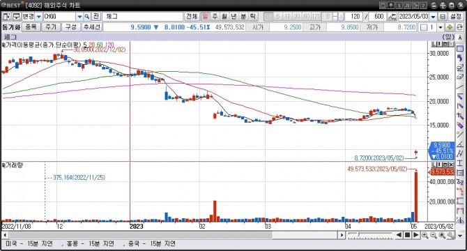 체그는 이날 8.52달러(48.41%) 폭락한 9.08달러로 추락했다.